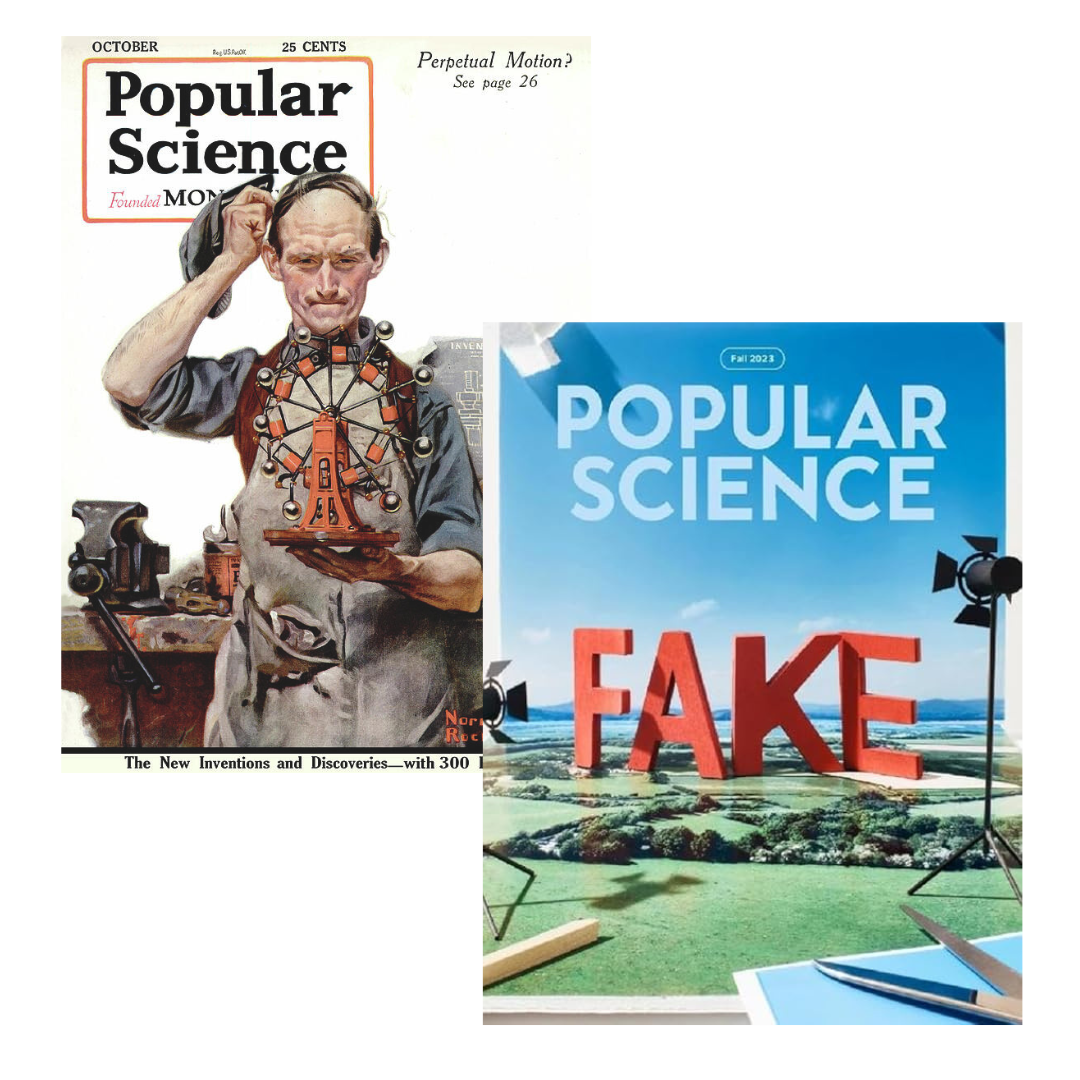 Meanwhile, the news business is collapsing, not least because social media companies, which made themselves central to how people read the news, are now turning away from carrying news content at all. Facebook and Twitter referrals were our top source of traffic during my time at Popular Science. One or two big hits on those platforms could single-handedly account for a month’s worth of traffic. But since January 2023, referral traffic from Facebook to the top news publishers has fallen by 40 percent. How anyone is surviving is beyond me. We certainly didn’t. After nearly two centuries in business, the last print issue of Popular Science was published in April 2021. The magazine's last online issue, which carried the headline "Fake," was published in September 2023.